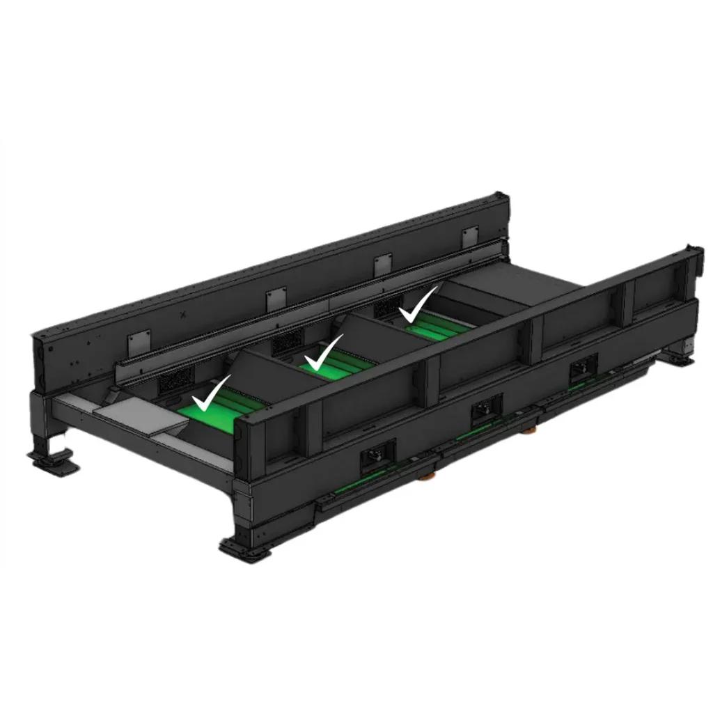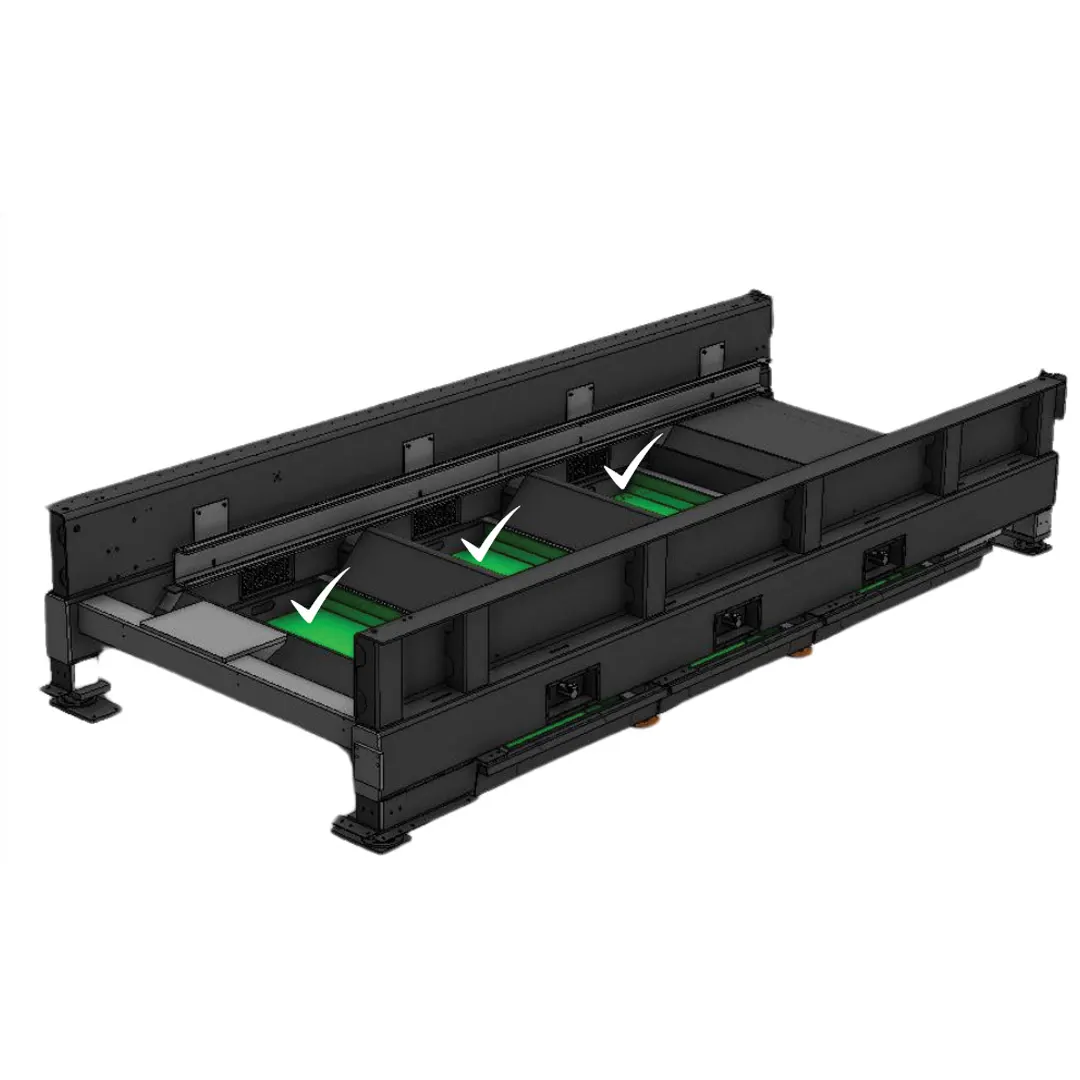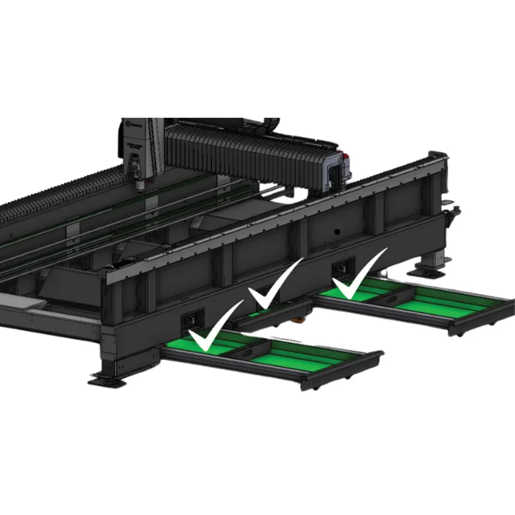 Slag trolleys are available for easy collection of fallen parts after cutting operations. Optionally, a CNC controlled conveyor can be included.